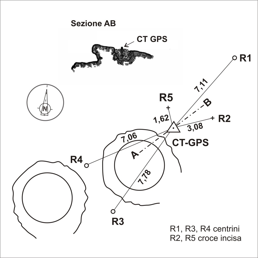 | materializzazione | Centrino in acciaio inox del tipo "GPS-A" incollato in asse al gambo filettato del centrino di superficie del trigonometrico fissato sui ruderi della copertura in cemento dell'ex forte di Cima di Lan. |