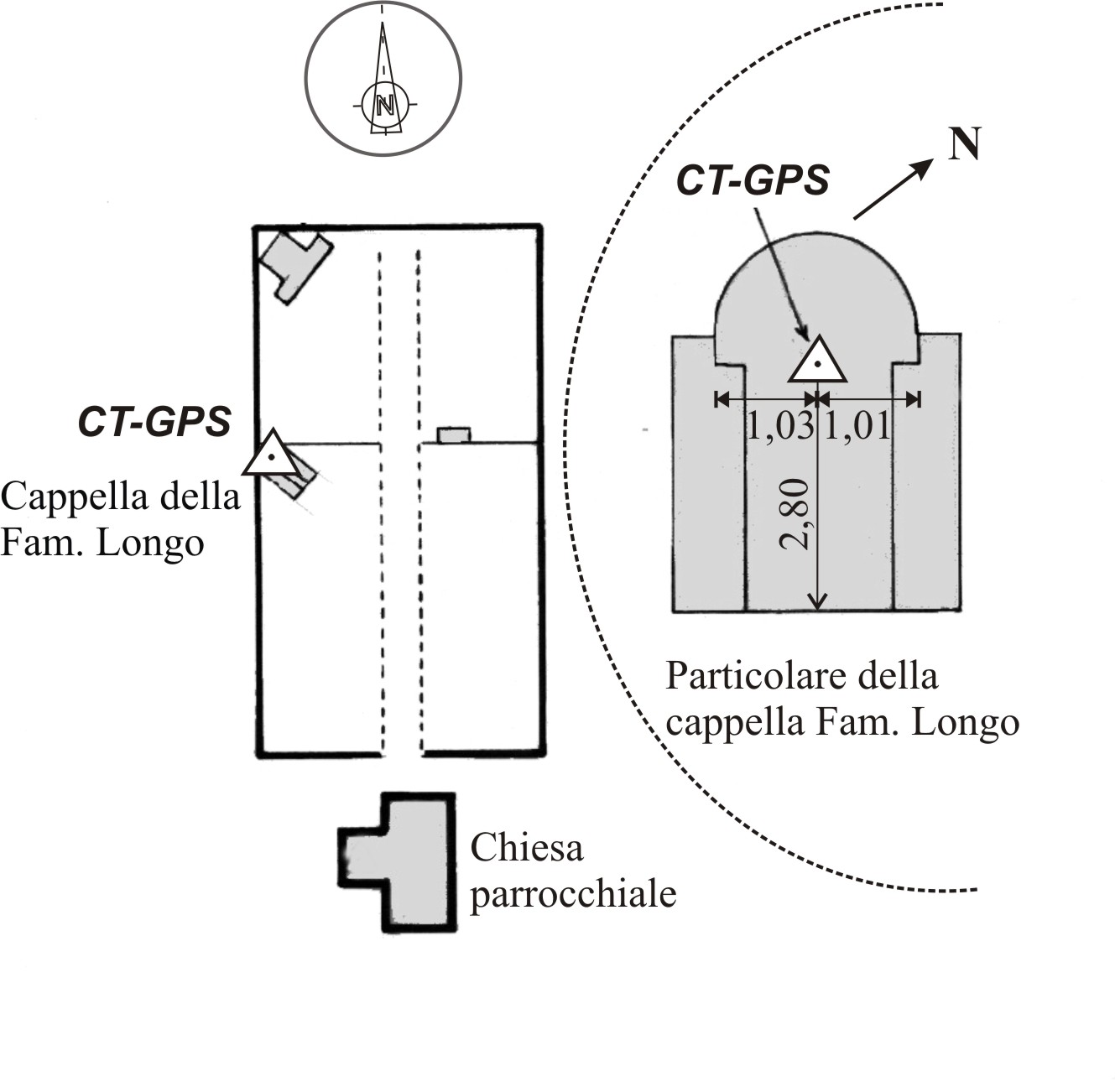 | materializzazione | Centrino di tipo "GPS C" infisso all'interno del cimitero di Castelnuovo sulla copertura della tomba di famiglia Longo coincidente con il FCS del CT 022294. |