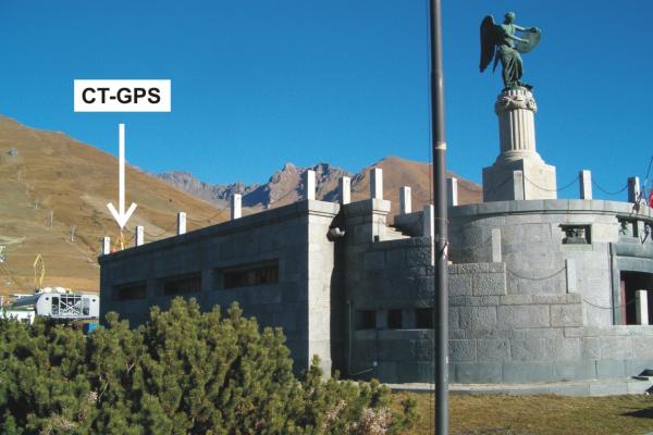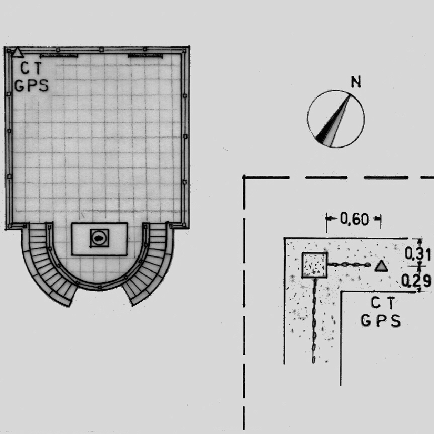 | materializzazione | Centrino di tipo "GPS C" infisso alla sommità del cordolo perimetrale in pietra granitica della terrazza, nei pressi dello spigolo ovest. |