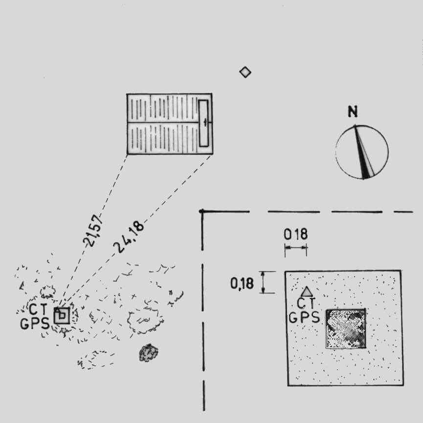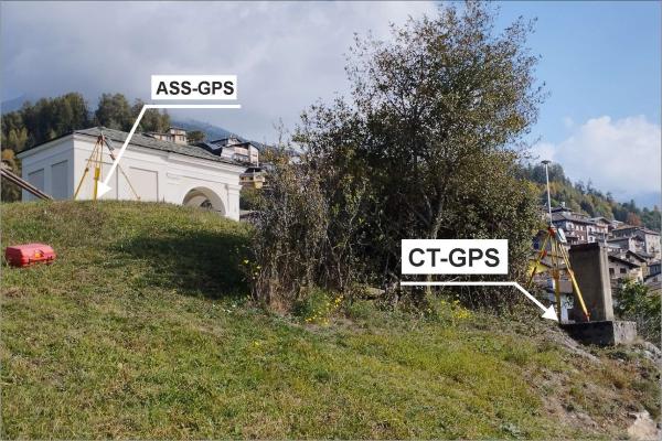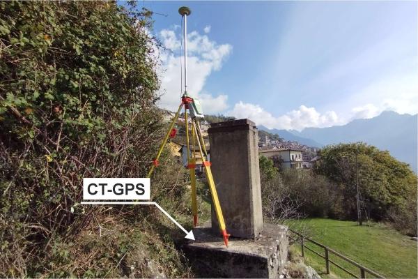 Centrino di tipo "GPS C" infisso sul basamento del pilastrino in cemento sito a sud-ovest della cappella.