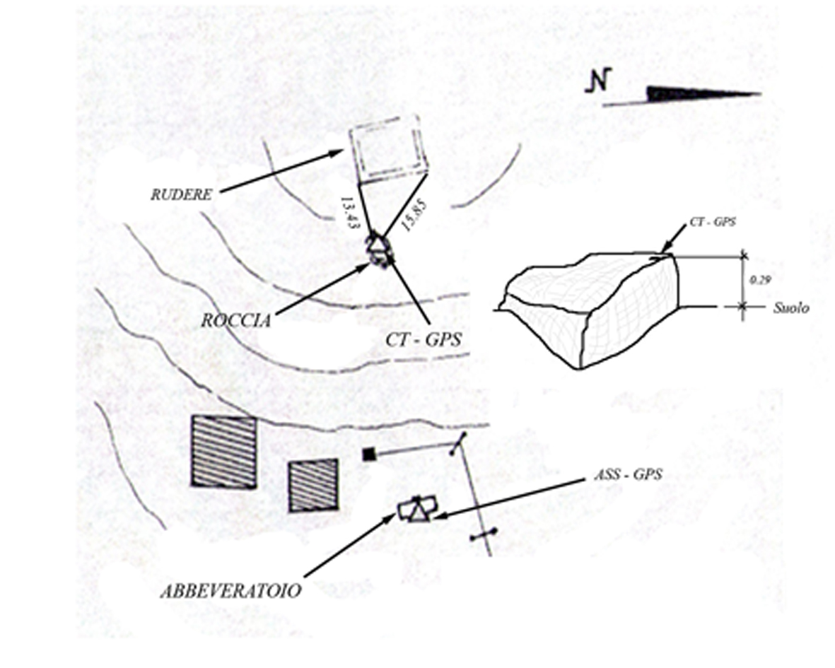 | materializzazione | Centrino di tipo "GPS C" fissato su roccia affiorante sopra la casera sul crinale della Cima della Rosetta. |