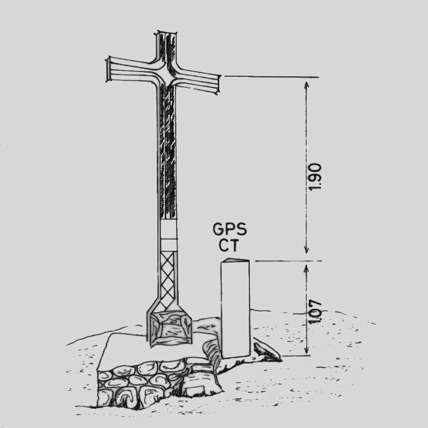 | materializzazione | Asse geometrico del pilastrino in ferro a sezione triangolare, con sottostanti centrino e piastra con bullone in ferro interrata, coassiali. |