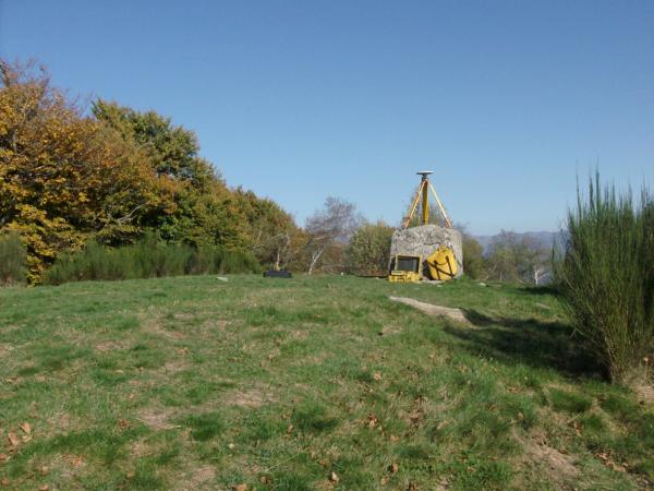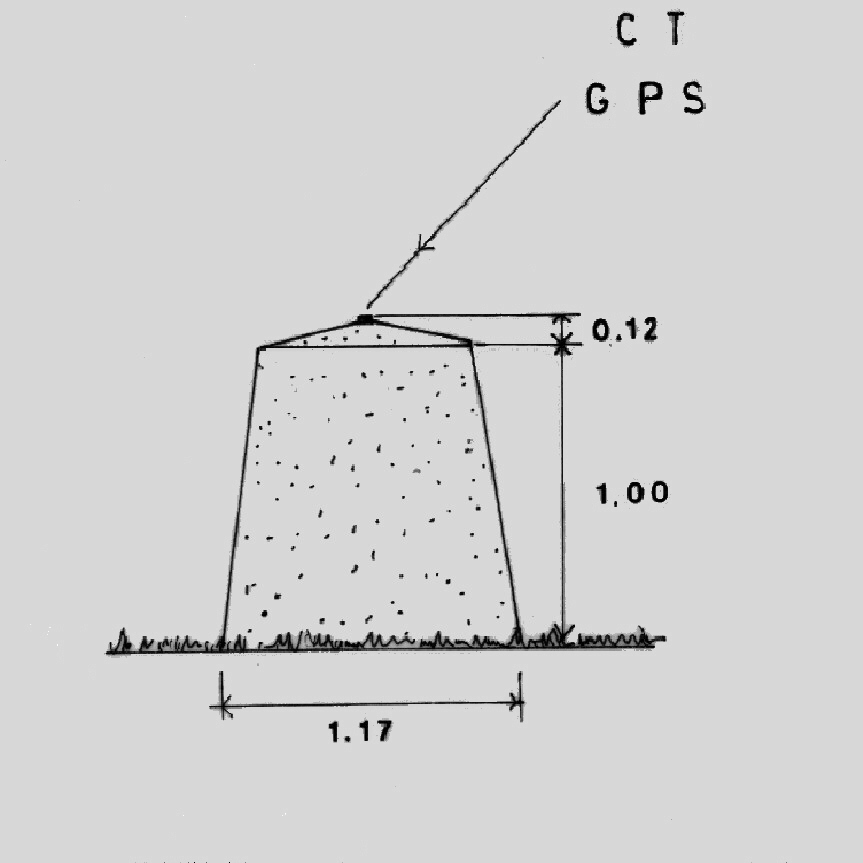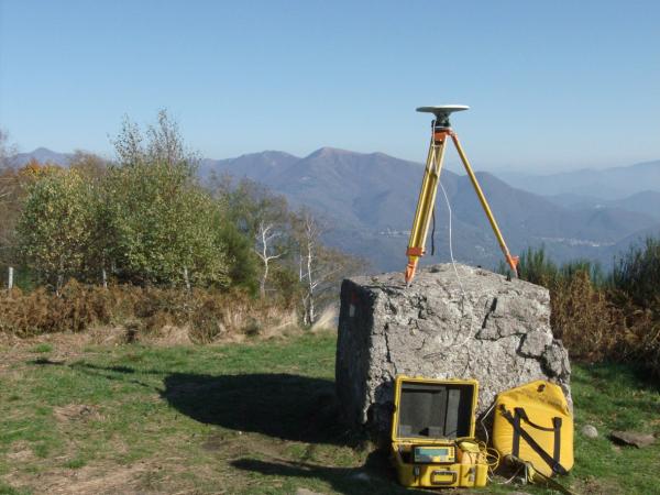 Centrino di tipo "GPS A" fissato in asse al centrino di piombo costituente asse geometrico del blocco in calcestruzzo sulla cima del monte omonimo.