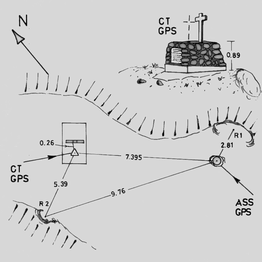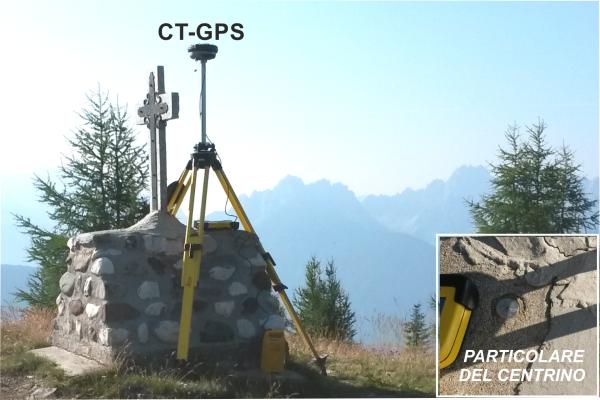 | materializzazione | Centrino di tipo "GPS C" infisso sul basamento in pietra di una croce sulla cima del monte omonimo. Due centrini di riferimento cementati su roccia. |