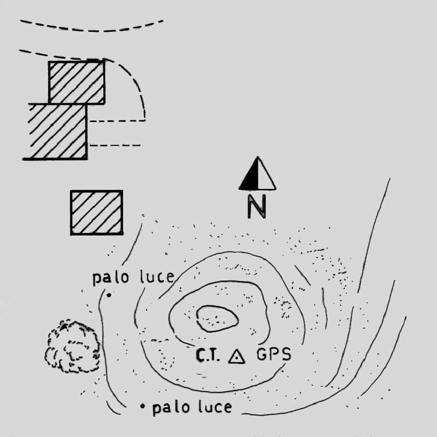 Centrino di tipo "GPS A" fissato sul centrino di superficie IGM cementato al suolo in un blocco di calcestruzzo. Il vertice è vicino all'osservatorio astronomico di Cornedo all'Isarco e leggermente eccentrico verso sud rispetto alla parte sommitale di Costa Egger