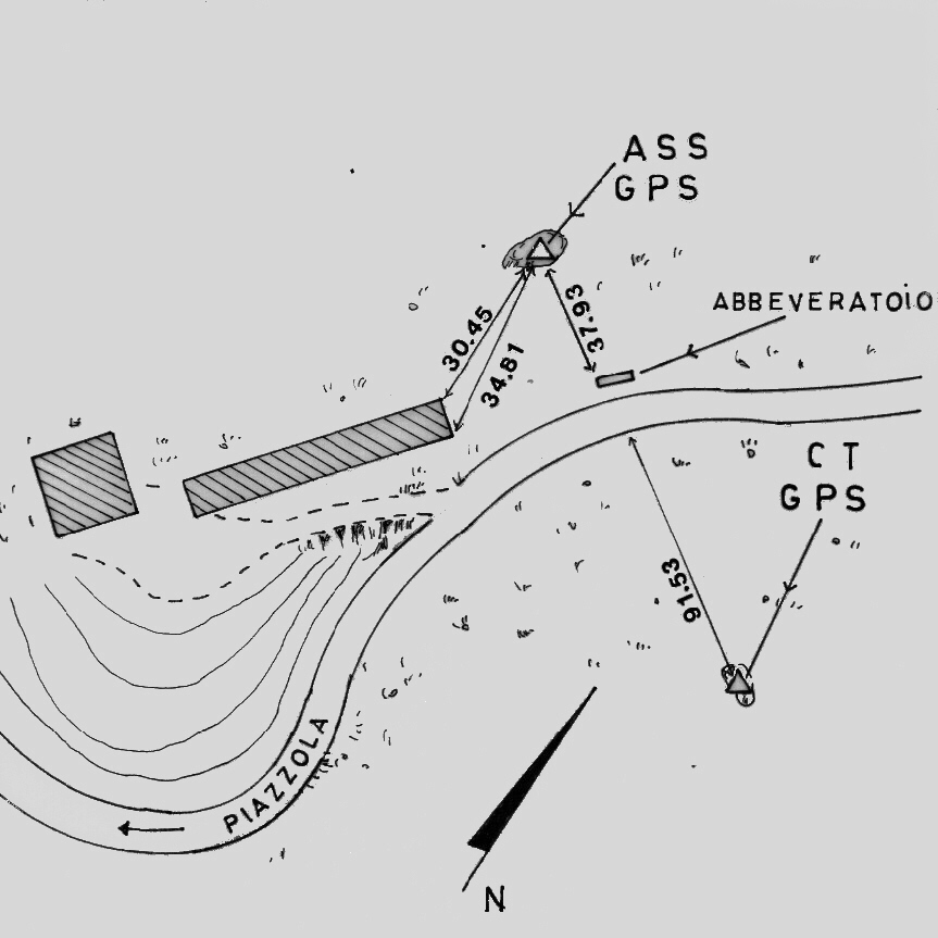 | materializzazione | Centrino di tipo "GPS C" fissato su roccia affiorante a sud della strada in prossimità della malga. |