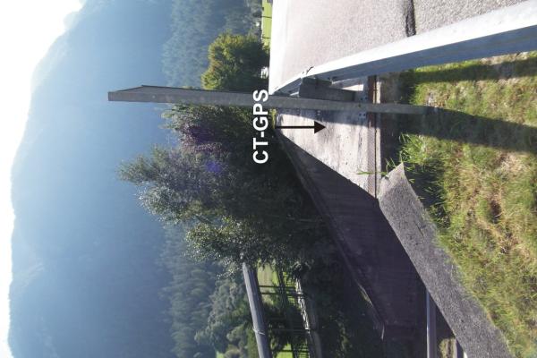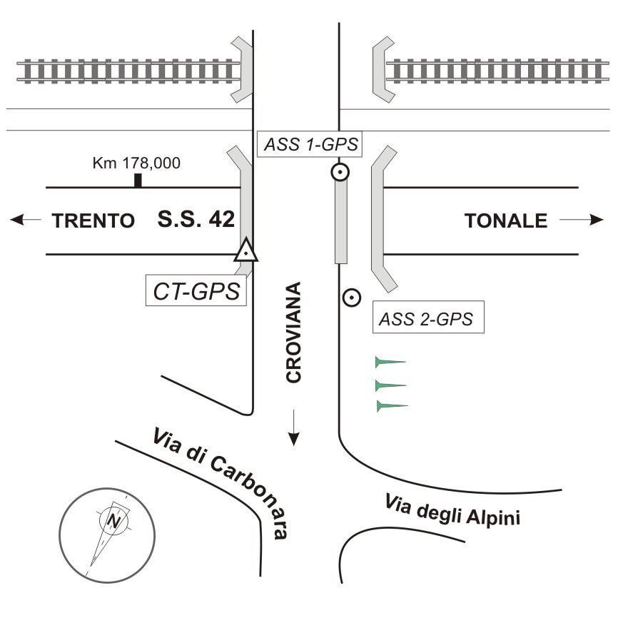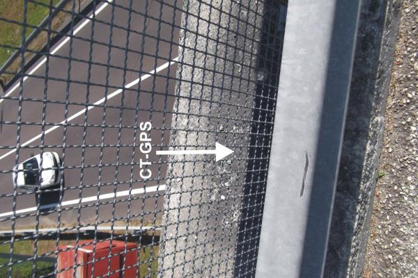 Centrino di tipo "GPS C" infisso a livello suolo sulla trave di nord-est del cavalcavia di Via Carbonara sulla S.S.42.