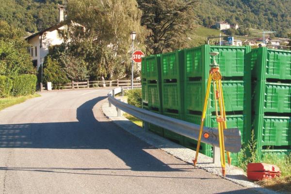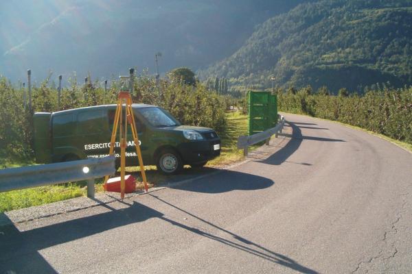Centrino di tipo "GPS C" fissato alla sommità del muretto a retta in calcestruzzo del guard-rail in prossimità dello spigolo sud.