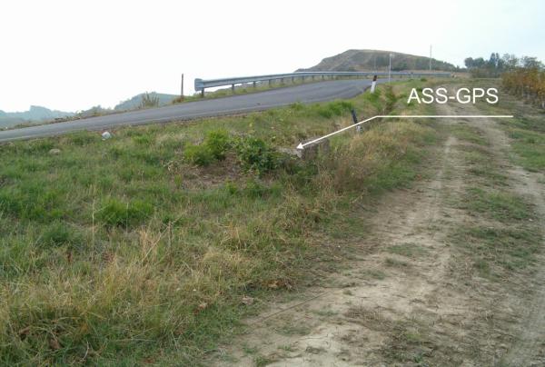 Centrino in acciaio inox del tipo "GPS C" infisso nello spigolo a nord della chiavica in cemento, salendo si trova sul lato destro della S.P. 65 in prossimità del km 1,500.