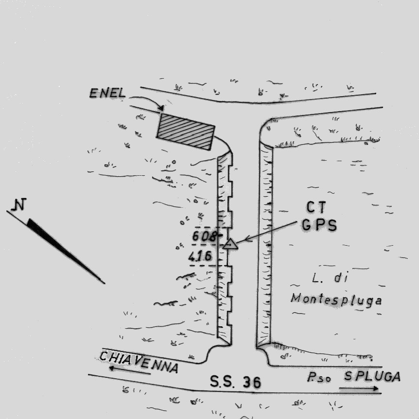| materializzazione | Centrino di tipo "GPS C" fissato sulla cornice in granito della spalletta a valle della diga, sovrastante la targa indicante l'anno di costruzione della diga.. |