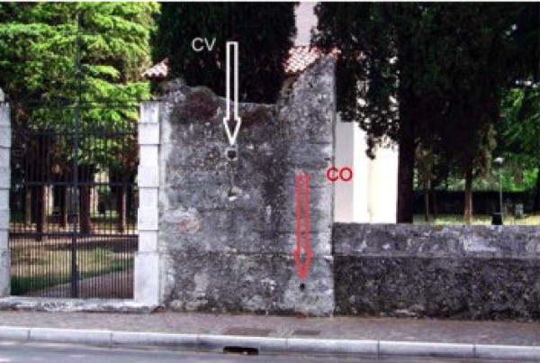 | Contrassegni | [{"simbolo_contrassegno":"B1","materializzazione":"(CSO) – Infisso sul muro di recinzione , a destra delll'ingresso al giardino della chiesa."},{"simbolo_contrassegno":"V1","materializzazione":"(CSV) – Sul muro suddetto in corrispondenza del cso ."}] |