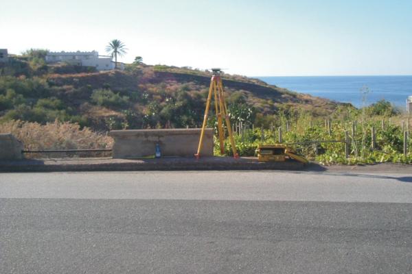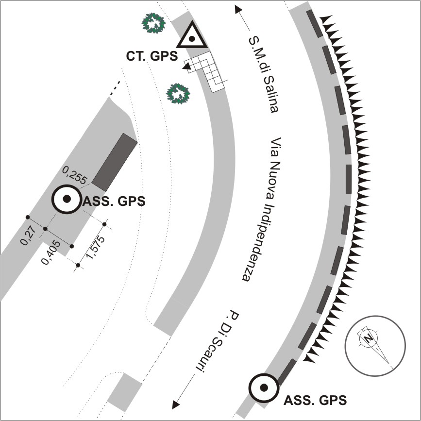 Centrino del tipo "GPS D" infisso alla sommità e prossimo alla testata nord del muro di contenimento in cemento armato di valle in via Nuova Indipendenza, posto nella periferia ovest del paese di Malfa, di fronte all' accesso della carrareccia che conduce al CT GPS.