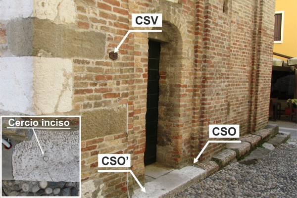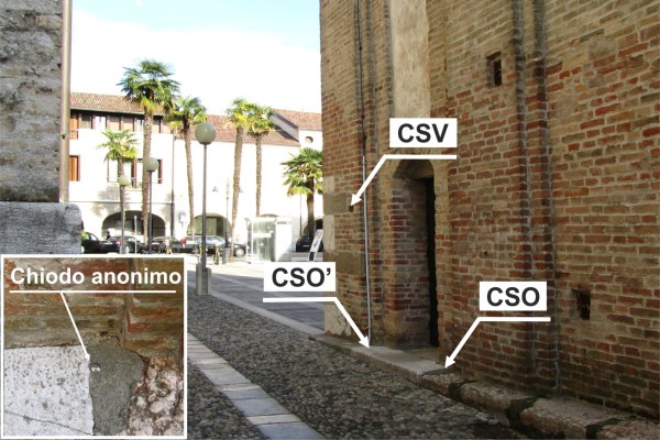 | Contrassegni | [{"simbolo_contrassegno":"B2","materializzazione":"(CSO) – Sulla soglia del campanile a destra della porta di ingresso ."},{"simbolo_contrassegno":"B3","materializzazione":"(CSO') – Sul gradino della porta d'ingresso , a sinistra entrando ."},{"simbolo_contrassegno":"V3","materializzazione":"(CSV) – Sulla parete a sinistra della porta suddetta ."}] |