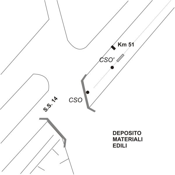 | Contrassegni | [{"simbolo_contrassegno":"B2","materializzazione":"(CSO) – Sul cordolo di sinistra del ponticello che adduce al deposito materiali edili ."},{"simbolo_contrassegno":"P5","materializzazione":"(CSO') – Pozzetto coperto da chiusino in ghisa addossato al tombino a valle della scarpata della strada, riva destra, presso la pietra chilometrica ."}] |