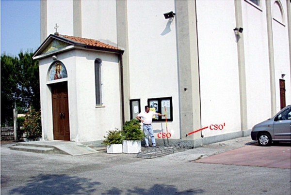 [{"simbolo_contrassegno":"P3","materializzazione":"(CSO) – Alla base della facciata presso lo spigolo destro ."},{"simbolo_contrassegno":"B1","materializzazione":"(CSO') – Sulla lesena di destra della facciata ."},{"simbolo_contrassegno":"V1","materializzazione":"(CSV) – Sulla facciata in corrispondenza del cso' ."}]