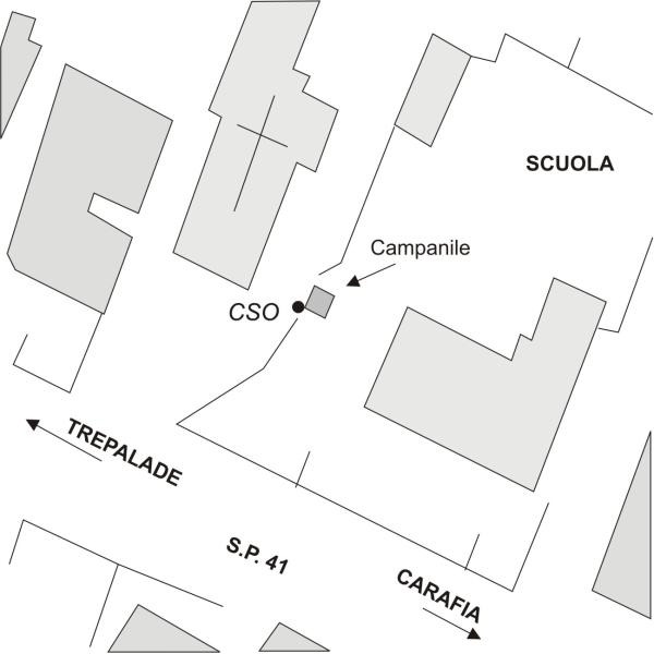 [{"simbolo_contrassegno":"P5","materializzazione":"(CSO) – Alla base del campanile, lato verso la strada, presso lo spigolo di sinistra. Il cso \u00e8 protetto da un tubo coperto da un chiusino posto al livello del suolo ."}]