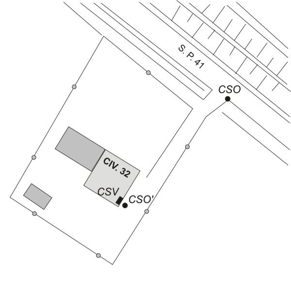 | Contrassegni | [{"simbolo_contrassegno":"B1","materializzazione":"(CSO) – Spalletta di sinistra a valle del ponticello di accesso alla propriet\u00e0 ."},{"simbolo_contrassegno":"P3","materializzazione":"CSO') – Alla base del fronte verso Ronchi, presso lo spigolo sinistro."},{"simbolo_contrassegno":"V1","materializzazione":"(CSV) – in corrispondenza del cso' ."}] |