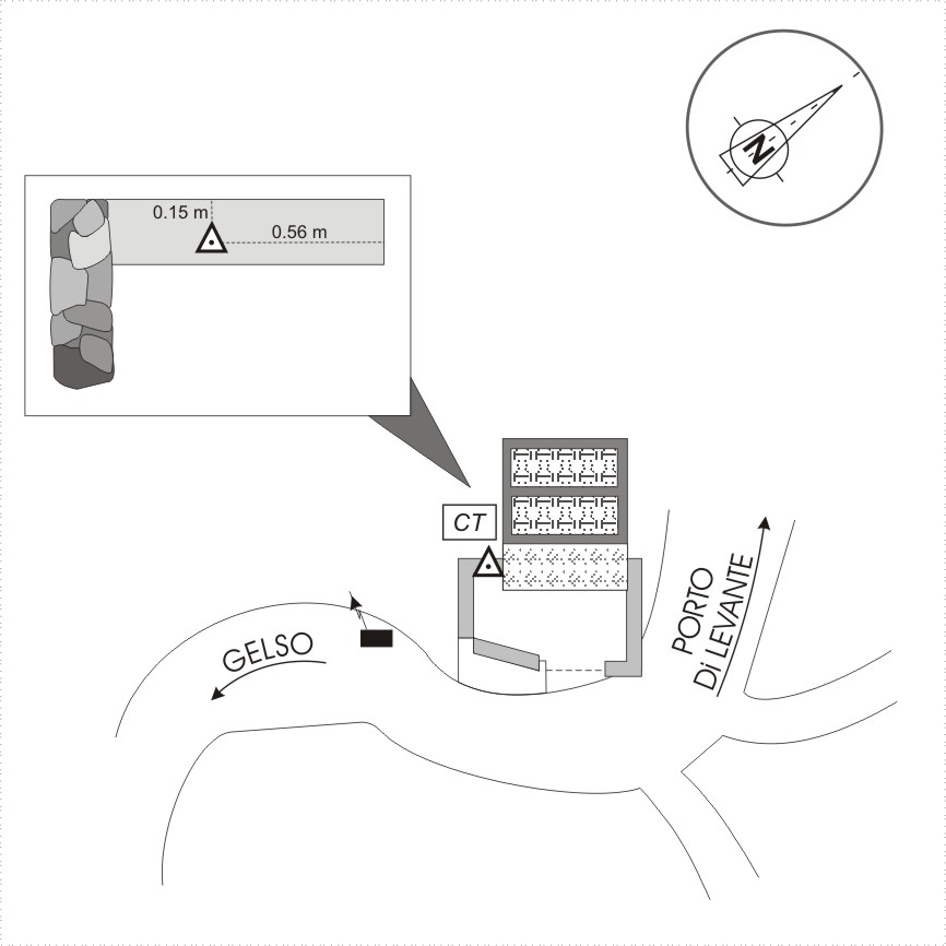 Centrino in acciaio inox del tipo "GPS C" cementato sul muro di sostegno di sinistra guardando il serbatoio