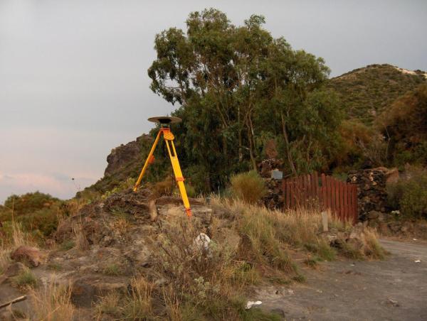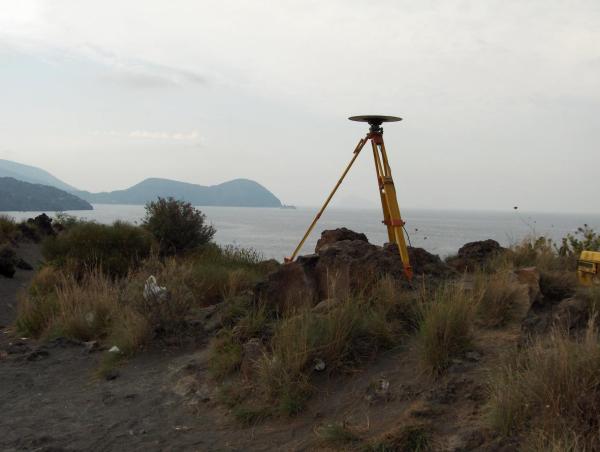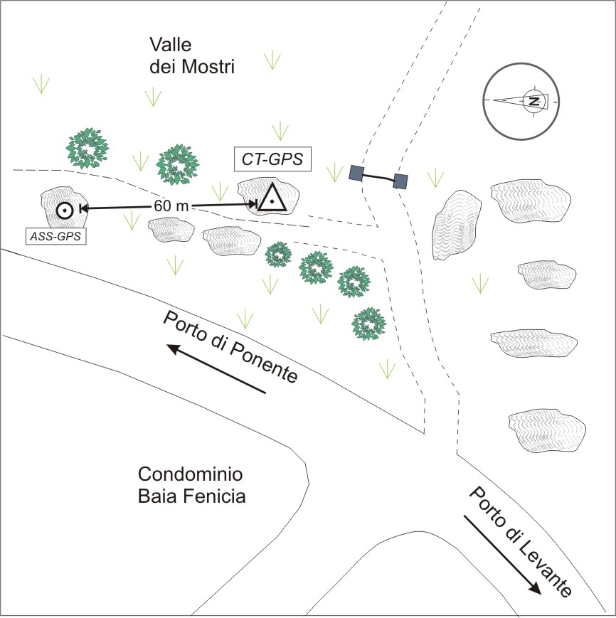 Centrino in acciaio inox del tipo "GPS C" cementato su roccia affiorante.