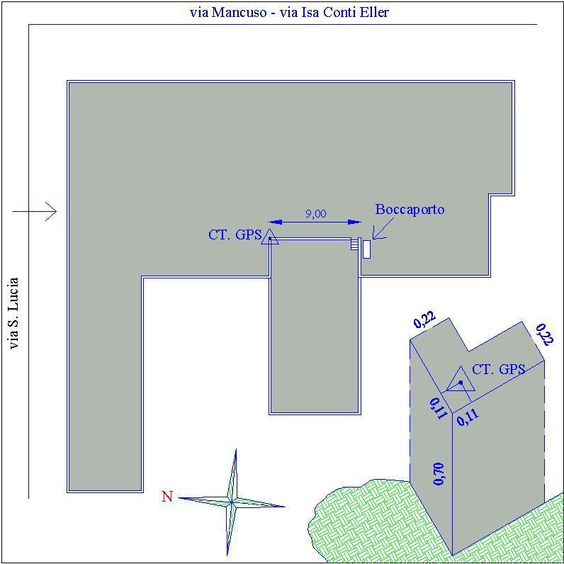 Centrino in acciaio Inox del tipo "GPS C" infisso nella testata del parapetto che corre lungo il perimetro della terrazza praticabile dell'istituto tecnico commerciale e per geometri.