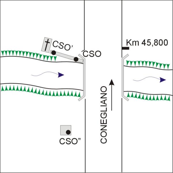 [{"simbolo_contrassegno":"B2","materializzazione":"(CSO) – Chiodo anonimo posto a 0,98 metri dall'inizio della spalletta,riva sinistra,a monte."},{"simbolo_contrassegno":"B2","materializzazione":"(CSO') – Chido anonimo posto a 4,35 metri dall'inizio della stessa spalletta del CSO,in vicino al tabernacolo."},{"simbolo_contrassegno":"B4","materializzazione":"(CSO\") – Centrino in acciaio del tipo universale posto su di un riporto di cemento armato,sulla sinistra della statale,prima del torrente Crevada."}]