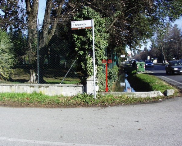 [{"simbolo_contrassegno":"B2","materializzazione":"(CSO) – Contrassegno del catasto posto alla base del pilastro, sulla spalletta del ponticello che immette in Via Smaniotto."},{"simbolo_contrassegno":"V4","materializzazione":"(CSV) -Piastrina del catasto infissa sul pilastro di recinzione , fronte strada."}]