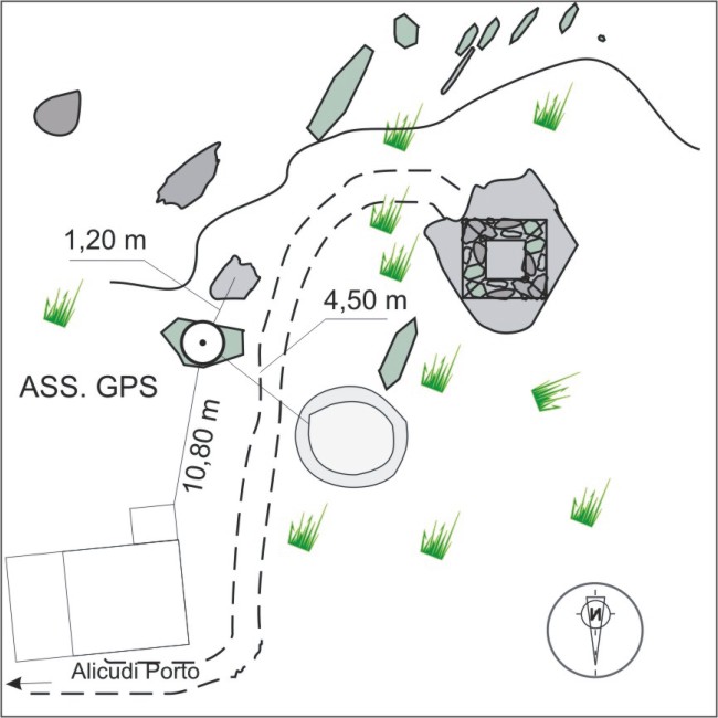 | materializzazione | Centrino GPS di tipo "D" infisso sulla sommità della roccia affiorante a sinistra del sentiero che conduce al pilastrino tronco-piramidale del trigonometrico IGM 244024. |