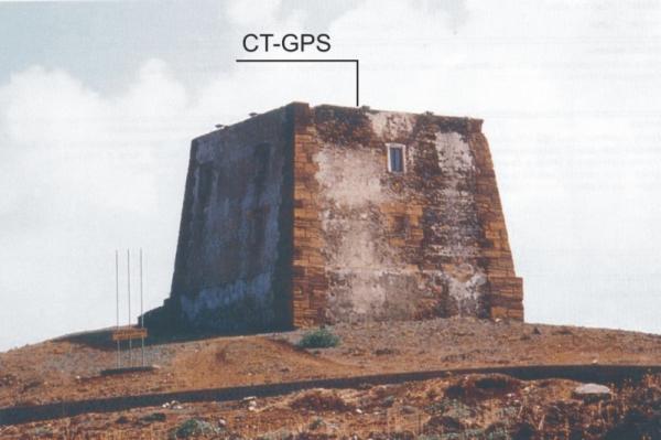 Centrino metallico con testa tonda TyrGeonet del diametro di un cm. infisso nel pavimento di copertura della terrazza della torre.