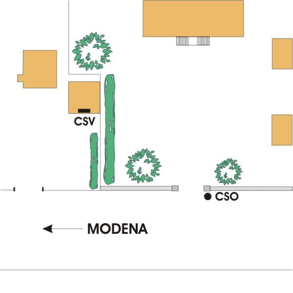 [{"simbolo_contrassegno":"B1","materializzazione":"(CSO) – Sul pilastro di destra del cancello d'ingresso."},{"simbolo_contrassegno":"V5","materializzazione":"(CSV) – (Ditta Carra) Nella facciata della cabina elettrica, a sinistra della porta."}]