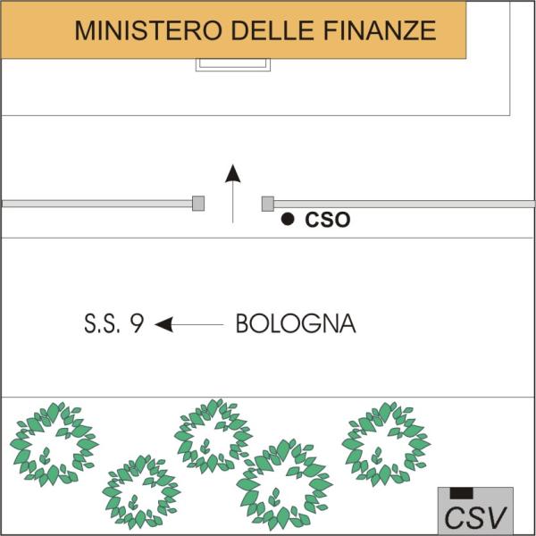 [{"simbolo_contrassegno":"P5","materializzazione":"(CSO) Alla base del pilastro di destra del cancello principale. il cso \u00e8 protetto da un chiusino posto a livello suolo."},{"simbolo_contrassegno":"V5","materializzazione":"(CSV) – (Catasto) Sulla facciata della cabina elettrica posta di fronte all'edificio ministeriale."}]