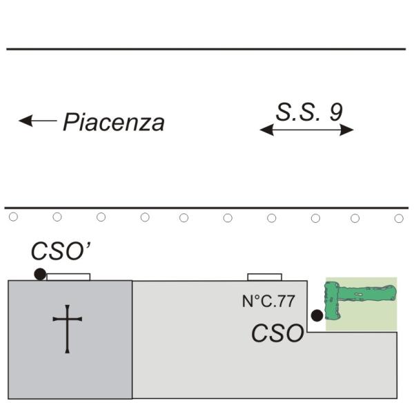 | Contrassegni | [{"simbolo_contrassegno":"B1","materializzazione":"(CSO) – Bullone IGM infisso sul muro laterale sinistro del corpo avanzato dell'edificio, in corrispondenza della finestra murata."},{"simbolo_contrassegno":"B7","materializzazione":"(CSO') – Chiodino zincato, recante la scritta \"C.S. – PC\", infisso sul cordolo in pietra a destra del portone della chiesa."}] |