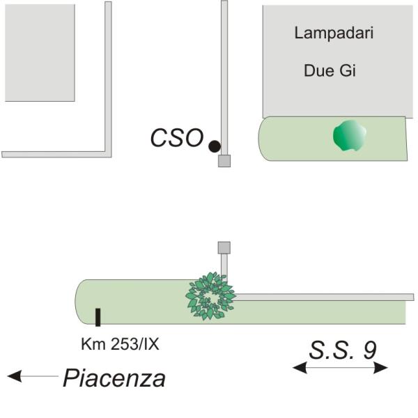 | Contrassegni | [{"simbolo_contrassegno":"B1","materializzazione":"(CSO) – Bullone ARPA infisso nel muro di recinzione in c.a., a destra dell'ingresso."}] |