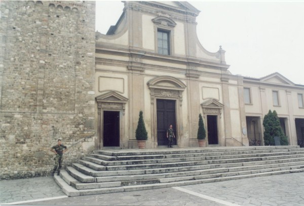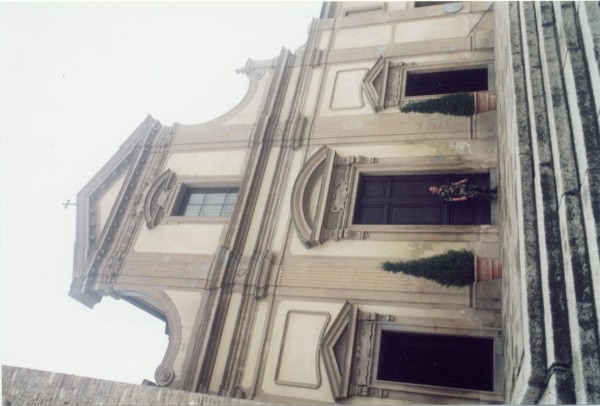 [{"simbolo_contrassegno":"B3","materializzazione":"(CSO) – Circolo inciso sul primo gradino del portone centrale della chiesa, a destra entrando."},{"simbolo_contrassegno":"B5","materializzazione":"(CSO') – DIsco impiombato sul secondo gradino della scalinata davanti alla chiesa, al disotto del campanile."},{"simbolo_contrassegno":"V3","materializzazione":"(CSV) – Piastrina in ghisa IGM infissa sulla facciata del campanile rivolta alla piazza ."}]