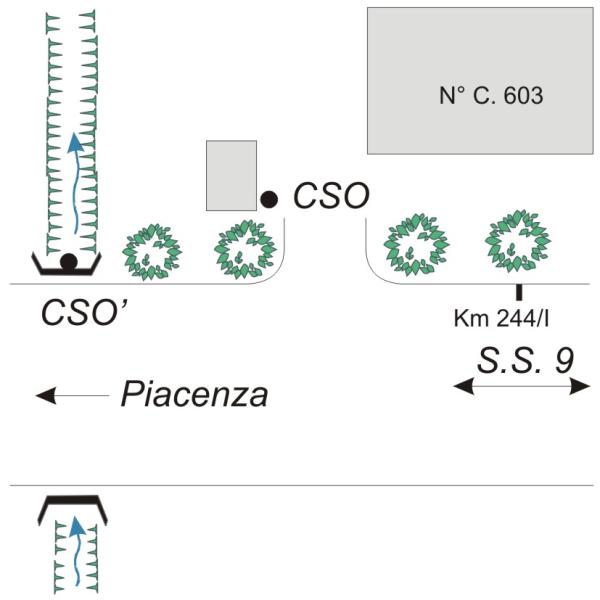 | Contrassegni | [{"simbolo_contrassegno":"P5","materializzazione":"(CSO) – Pozzetto interrato presso lo spigolo Sud del casotto a sinistra della casa. Rialzato con tubo in PVC e coperchio di ghisa."},{"simbolo_contrassegno":"B7","materializzazione":"(CSO') – Borchia ARPA infissa sulla sommit\u00e0 della spalletta del ponticello adiacente alla casa Verani, in prossimit\u00e0 della testata Nord-Ovest."}] |