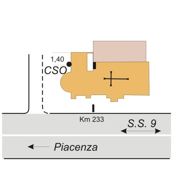 | Contrassegni | [{"simbolo_contrassegno":"P2","materializzazione":"(CSO) – Pozzetti interrati alla base della parete posteriore della canonica, a fianco dell'abside. Il contrassegno C \u00e8 contenuto all'interno del chiusino in ghisa a sinistra, il contrassegno B \u00e8 contenuto all'interno del pozzetto in PVC con coperchio in g"},{"simbolo_contrassegno":"V1","materializzazione":"(CSV) – Mensola IGM infissa sulla parete interna, lato verso Parma, di un cortiletto racchiuso dalle stanze della canonica, comunque misurabile dall'esterno attraverso le finestre."},{"simbolo_contrassegno":"P2","materializzazione":"(CSO) – Pozzetti interrati alla base della parete posteriore della canonica, a fianco dell'abside. Il contrassegno C \u00e8 contenuto all'interno del chiusino in ghisa a sinistra, il contrassegno B \u00e8 contenuto all'interno del pozzetto in"}] |