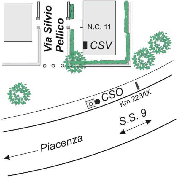| Contrassegni | [{"simbolo_contrassegno":"B1","materializzazione":"(CSO) – Bullone ARPA infisso sulla base in c.a. del palo di illuminazione posto in prossimit\u00e0 del segnale ettometrico, faccia volta verso Parma."},{"simbolo_contrassegno":"V1","materializzazione":"(CSV) – Mensola IGM infissa sulla parete Ovest della casa al n\u00b0 11 di Via Silvio Pellico."}] |