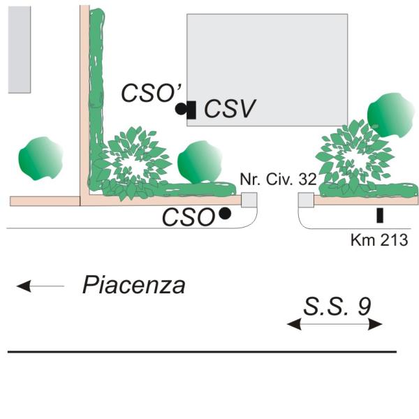 [{"simbolo_contrassegno":"B1","materializzazione":"(CSO) – Bullone IGM infisso nel muretto in mattoni alla base della recinzione, a sinistra del cancello d'ingresso."},{"simbolo_contrassegno":"V1","materializzazione":"(CSV) – Mensola IGM infissa sulla parete Ovest del fabbricato, in prossimit\u00e0 dello spigolo destro. Parzialmente incassata nell'intonaco."},{"simbolo_contrassegno":"B1","materializzazione":"(CSO') – Bullone IGM infisso nella parete Ovest del fabbricato, sotto il CSV, ora inglobato nell'intonaco e non misurabile."}]