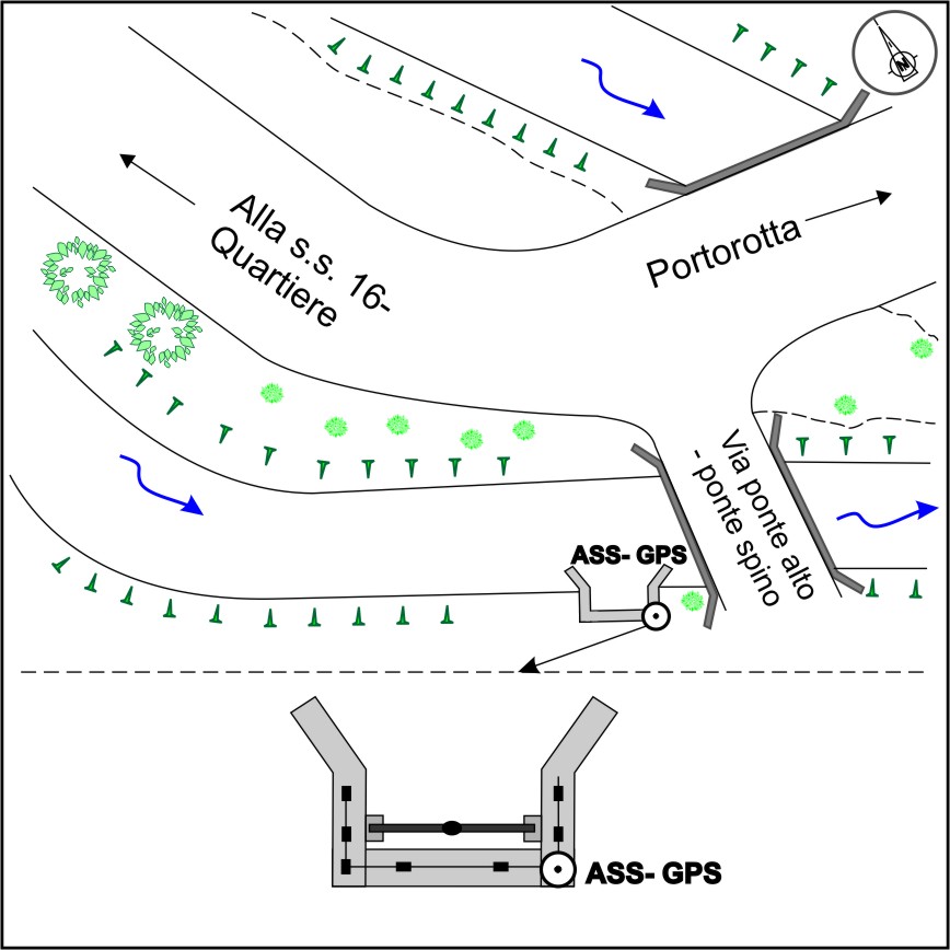 | materializzazione | Centrino in acciaio inox del tipo "GPS D", infisso su una piccola chiusa in prossimità di un ponticello. |