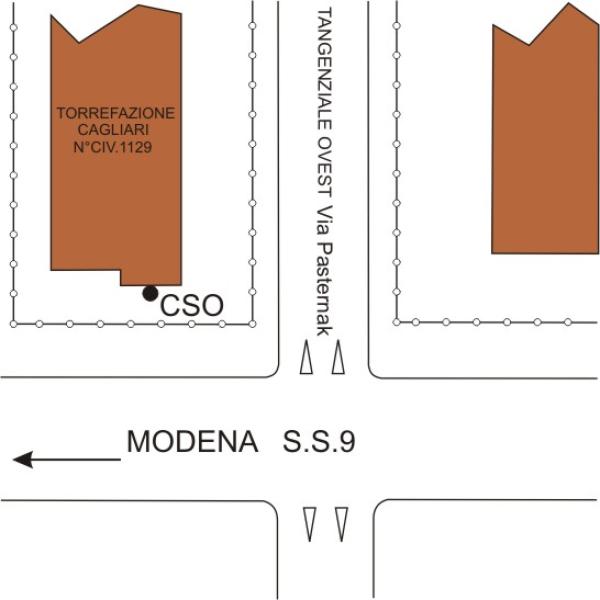 [{"simbolo_contrassegno":"B1","materializzazione":"(CSO) – Bullone del Comune di Modena infisso sulla facciata della torrefazione,verso Via Emilia Est,nel pilastro a destra della porta d'ingresso."}]