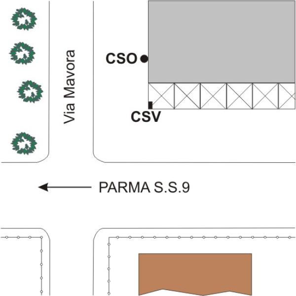 | Contrassegni | [{"simbolo_contrassegno":"B1","materializzazione":"(CSO) – Bullone del Comune di Modena infisso nella facciata laterale sinistra verso Via Mavora,del Bar-Tabacchi,tra la prima e la seconda finestra."},{"simbolo_contrassegno":"V5","materializzazione":"(CSV) – Piastrina della ditta Carra fissata sulla colonna d'angolo(incrocio Via Emilia ,Via Mavora),del porticato esternamente su Via Mavora."}] |
