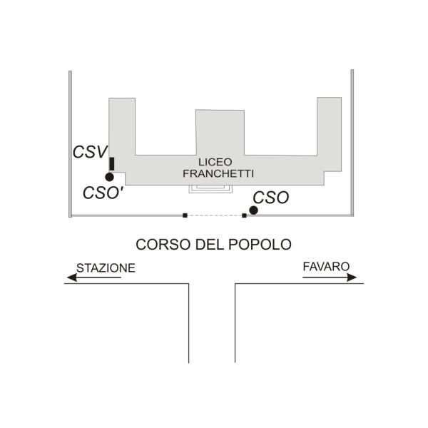 [{"simbolo_contrassegno":"B2","materializzazione":"(CSO) – Sul muretto di recinzione a destra del cancello d'ingresso."},{"simbolo_contrassegno":"B1","materializzazione":"(CSO') – Sulla parete laterale sinistra,presso lo spigolo destro,sotto il porticato."},{"simbolo_contrassegno":"V1","materializzazione":"(CSV) – In corrispondenza del cso'."}]