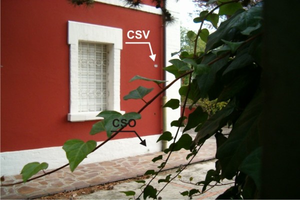 [{"simbolo_contrassegno":"B1","materializzazione":"(CSO) Sulla facciata a cm.90 dallo spigolo destro."},{"simbolo_contrassegno":"V4","materializzazione":"(CSV) – Piastrina catastale sulla facciata in corrispondenza del cso ."}]