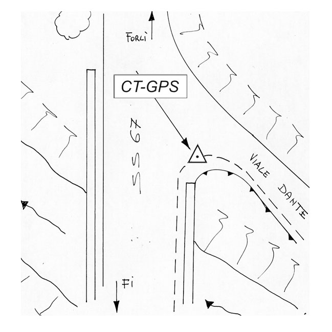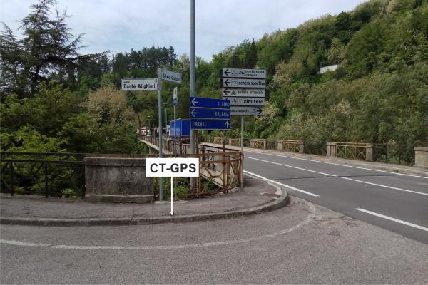 | Materializzazione | Centrino metallico infisso su cordolo del marciapiede del ponte sul fiume Montone della S.S. 67. |