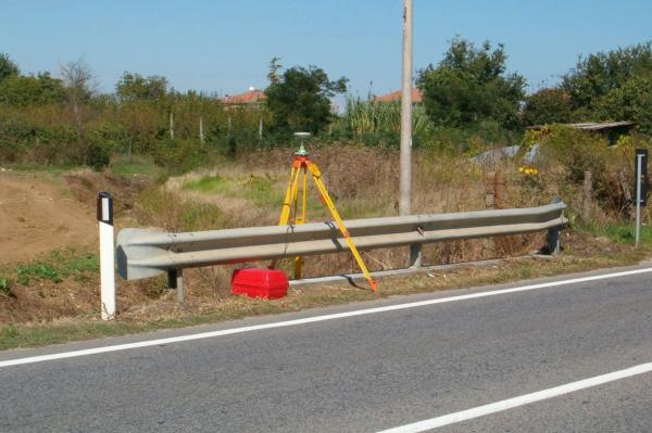 Centrino in acciaio inox del tipo "GPS C" infisso sul cordolo in cemento del guard-rail.
