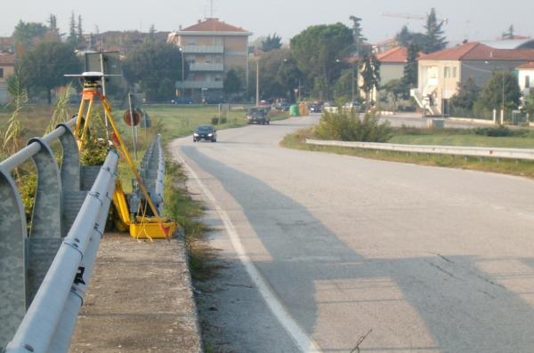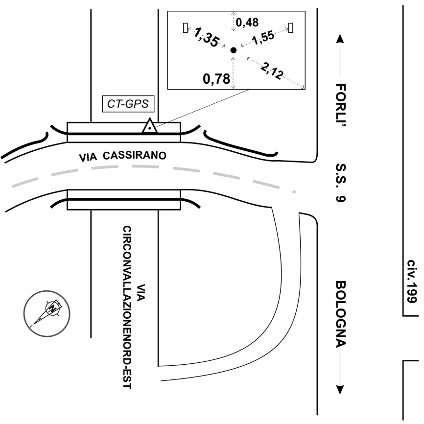 | Materializzazione | Centrino in acciaio inox del tipo "GPS C" infisso sul cordolo in cemento del cavalcavia. |