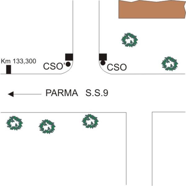 [{"simbolo_contrassegno":"B1","materializzazione":"(CSO) – Bullone della Regione Emilia Romagna infisso sul pilastro destro del cancello di accesso al civico 40."},{"simbolo_contrassegno":"P5","materializzazione":"(CSO') – Pozzeto posto alla base del pilastro sinistro del cancello di accesso.Protetto da tubo in PVC e tombino di ghisa anonimo."}]