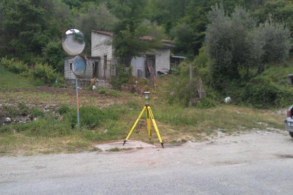 Centrino metallico orizzontale di tipo chiodo con rondella ARPAB Regione Basilicata infisso sulla sommità del pozzetto fogna in C.L.S.