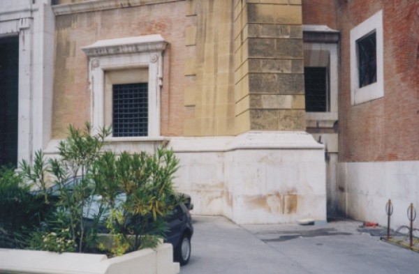 | Contrassegni | [{"simbolo_contrassegno":"P3","materializzazione":"(CSO) ( A : NON MISURABILE ) Pozzetto sito a destra dell'ingresso principale del Municipio di Foggia, nell'angolo formato fra il pilastro ed il muro della scalinata destra."},{"simbolo_contrassegno":"V1","materializzazione":"(CSV) Mensola infissa sul muro del Municipio in corrispondenza del pozzetto."}] |