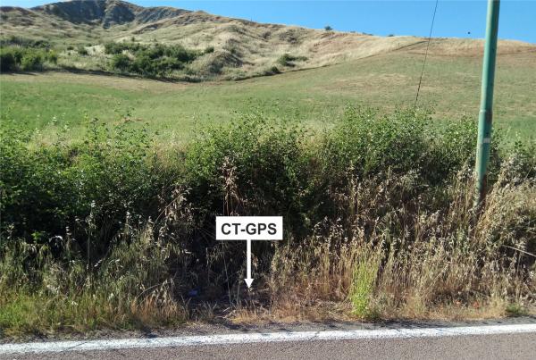 Centrino metallico infisso su grosso sifone in cemento sul bordo strada ovest della S.P. 21 a San Clemente.