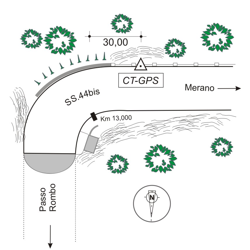 | materializzazione | Centrino in acciaio inox del tipo "universale", infisso nel cordolo del guard rail a valle vicino al muro in cemento armato. |